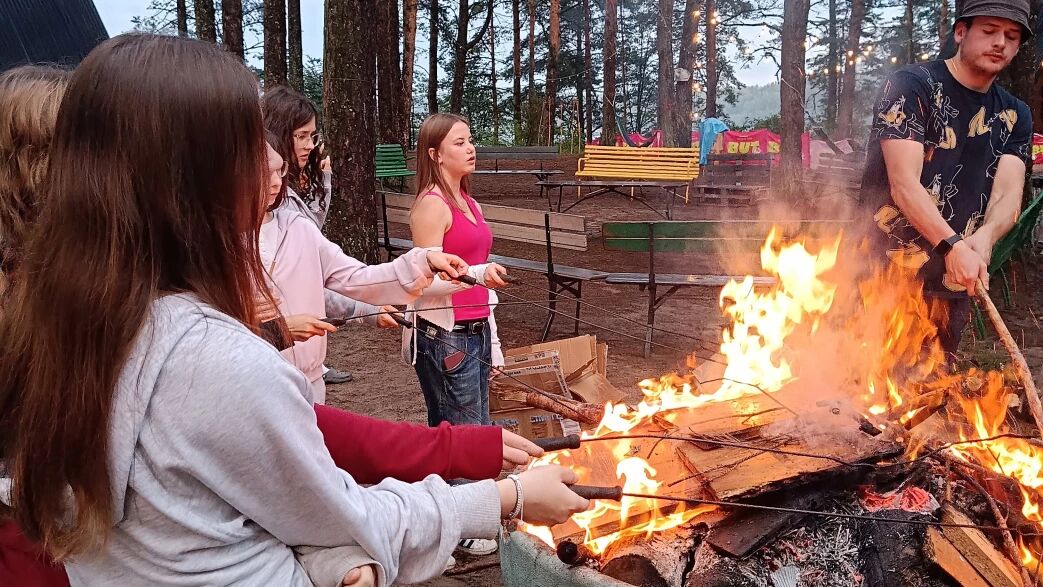 ognisko/grill z pieczeniem kiełbasek